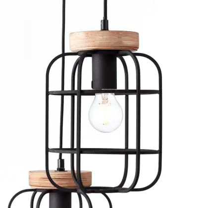 Brilliant Gwen Pendant Metal Wood Black | 420mm - Suitable for 3x E27