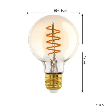 Eglo LED Globe E27 Filament Amber 4W 245lm - 820 Extra Warm White | Dimmable - Replaces 25W
