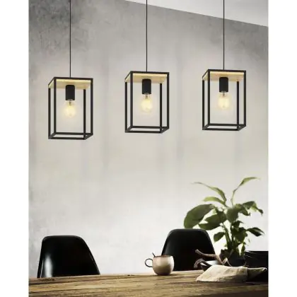 Eglo Pendant Libertad Steel Wood Black Brown | IP20 - Suitable for 3x E27
