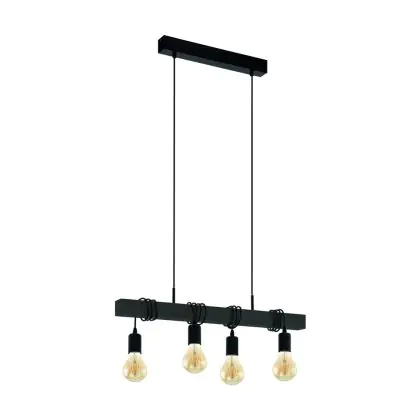 Eglo Pendant Townshend Steel Wood Black | IP20 - Suitable for 4x E27