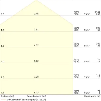 ![]() The colour code is a combination of colour rendering (CRI) and light colour (Kelvin). The first number indicates the colour rendering (1 = very poor colour rendering, 9 = maximum colour fastness). The second and third number contains the light colour. Example: the colour code 830 consists of good colour rendering (8) and warm white light (3000K). |