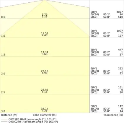 ![]() The colour code is a combination of colour rendering (CRI) and light colour (Kelvin). The first number indicates the colour rendering (1 = very poor colour rendering, 9 = maximum colour fastness). The second and third number contains the light colour. Example: the colour code 830 consists of good colour rendering (8) and warm white light (3000K). |