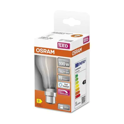 Multipack 6x Osram Classic LED B22d Pear Filament Frosted 11W 1521lm - 865 Daylight | Dimmable - Replaces 100W